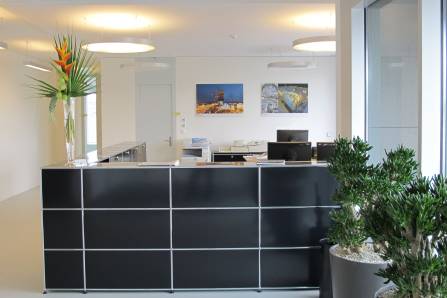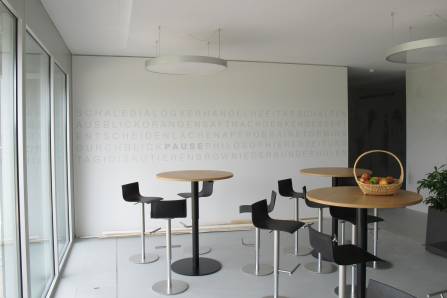 Heizung mit Grundwasser / Wärmepumpe, Wärmeverteilung mit TABS (Teilaktive Bauteilheizung), mit diesem Verteilsystem kann im Sommer auch gekühlt werden. Lüftung in Sitzungszimmern und Cafeteria.